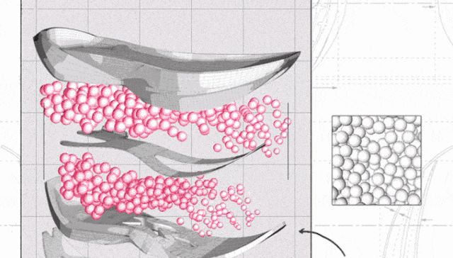 鞋底全是小TPU弹性小球,受到外界压力挤压时,多数颗 \" 爆米花 \" 就会变身一枚枚小型弹力球,迅速回弹,速即给予撑持。