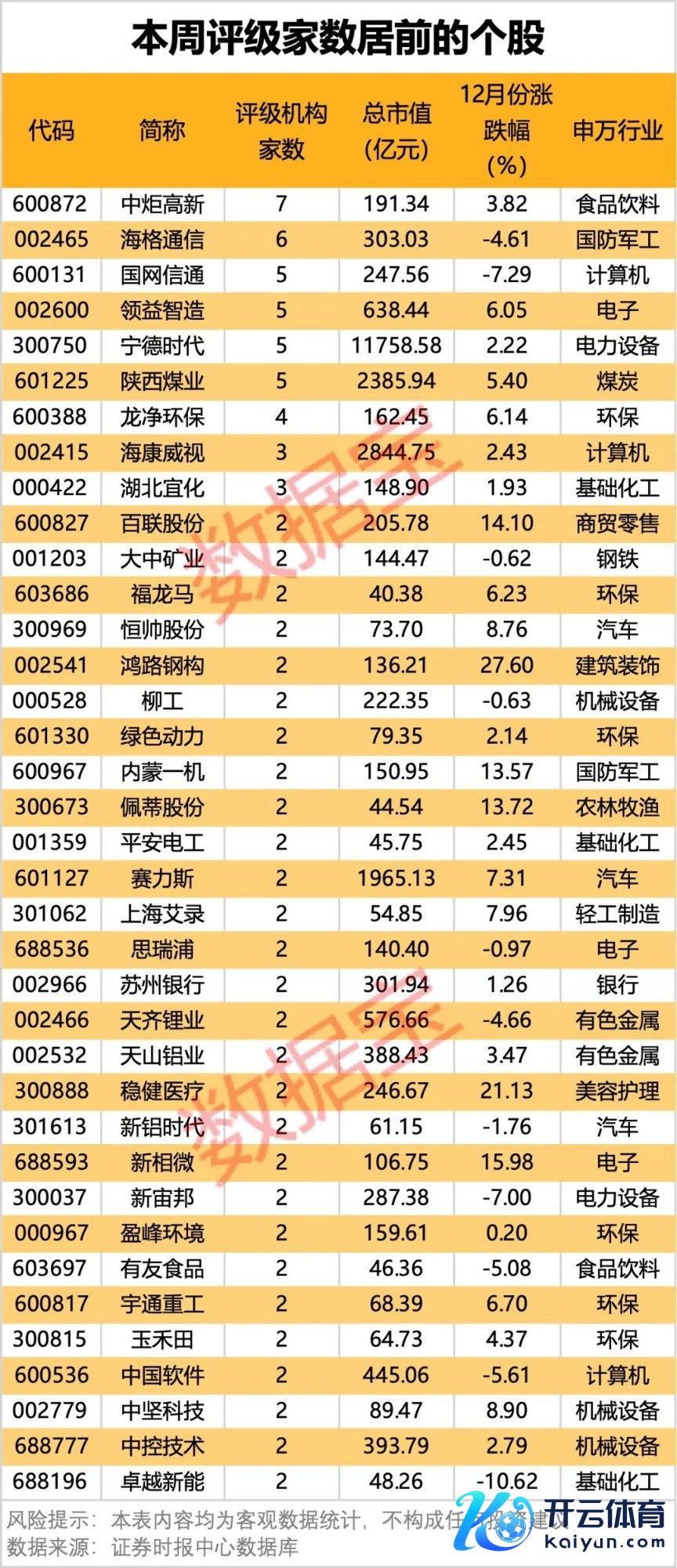 37股获2家及以上机构予以评级,机构暖热度最高的是中炬高新,有7家机构评级;紧随自后的是海格通讯,有6家机构评级。另外,国网信通、领益智造、宁德期间、陕西煤业均有5家机构重心暖热。