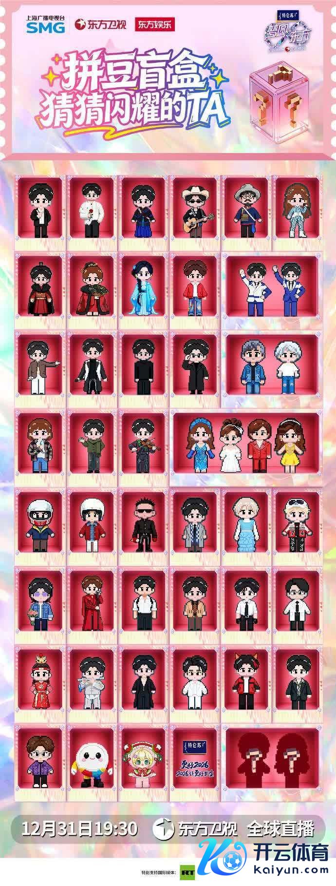 在宣传初期,东方卫视就和不雅众玩了个小游戏,以“盲盒”表情呈现明星威望,让大家凭证东说念主偶陈迹想到对应的明星。
