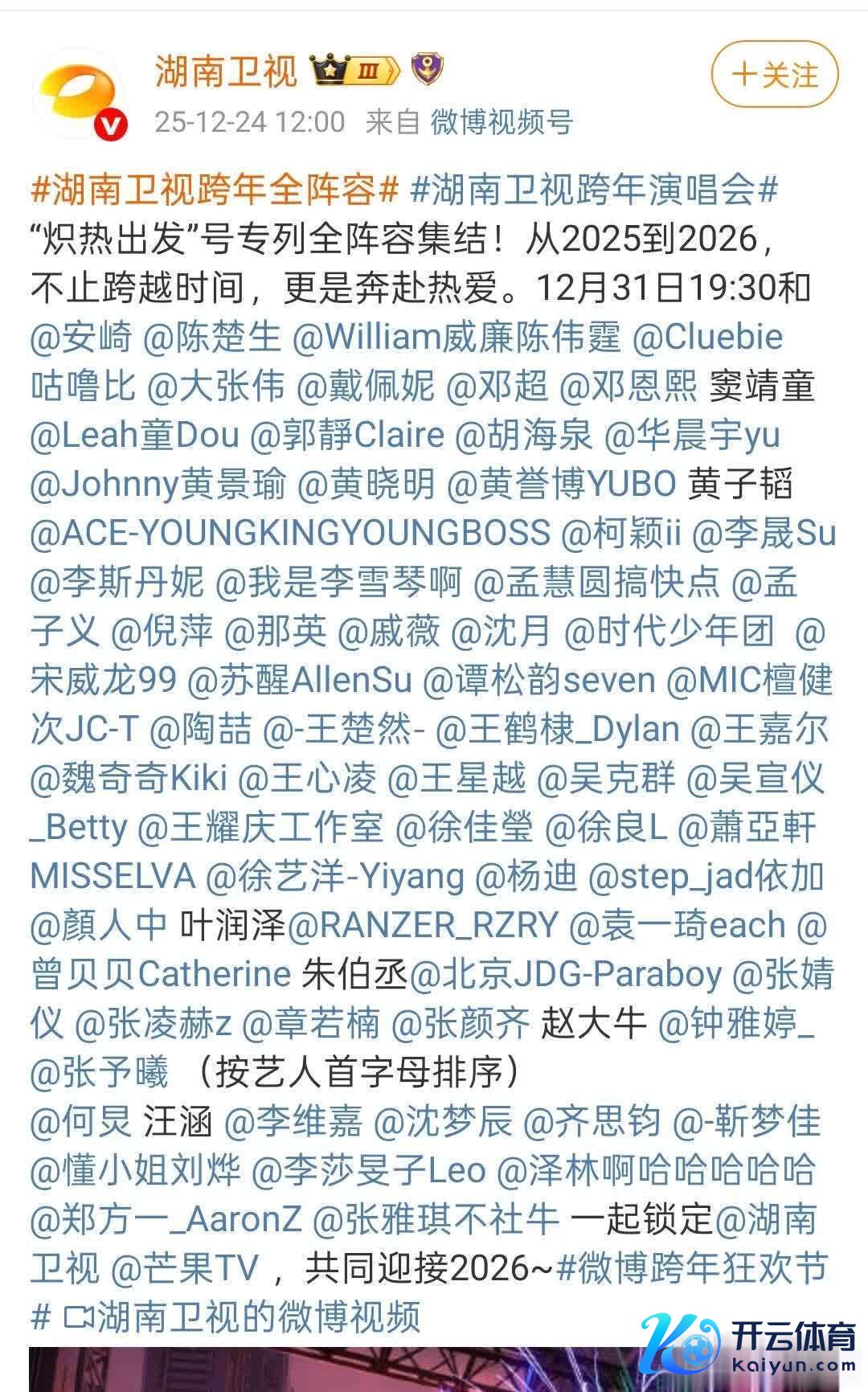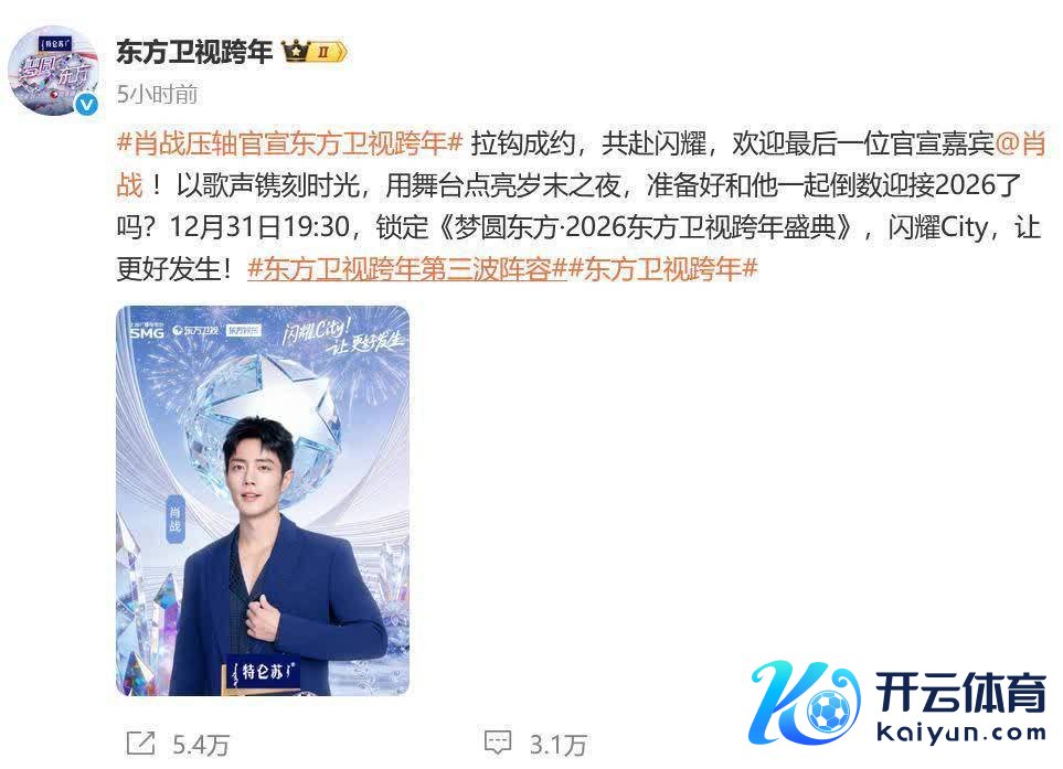距离2026跨年仅有一周时候开云体育,备受崇拜标跨年演唱会终于传来新音尘,其中湖南卫视和东方卫视已官宣全威望。
