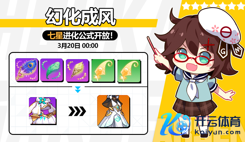 3月20日 00:00后,使用变幻成风+帮衬素材不错进化为七星至强神器幻为风暴!